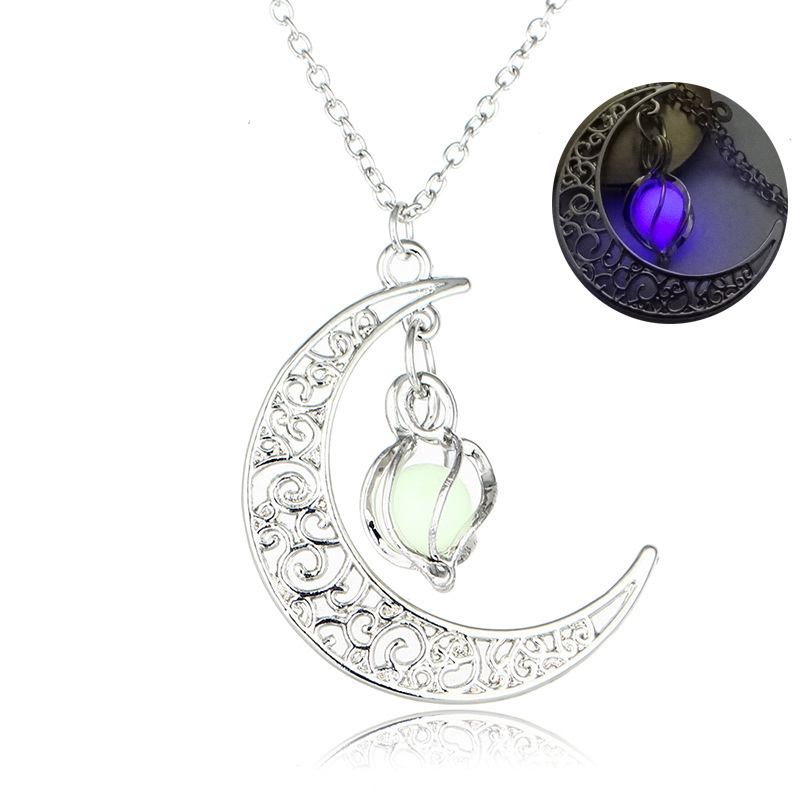 Glowing In The Dark Necklaces For Women Hollow Sun Moon Luminous Pendant Chain Female Night Party Jewelry Gift Purple – Sumsfashion